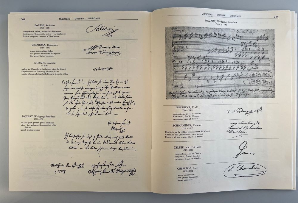 Klassisches Werk mit Abbildung von Schriftproben und Unterschriften bedeutender Persönlichkeiten (durch Register erschlossen), "es soll namentlich jüngern Sammlern ein Vergleichsmaterial und eine Grundlage bieten für die Anlegung einer systematischen Sammlung" (Vorwort). Die Vorworte und die Legenden dreisprachig (Französisch, Deutsch, Englisch).
