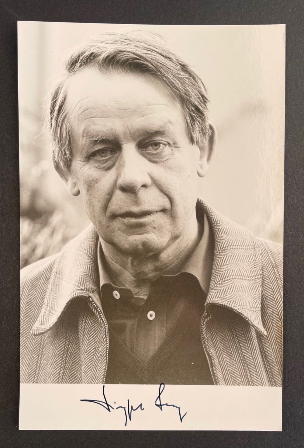 LENZ, Siegfried [1926-2014]: Porträtfotografie (schwarz-weiß) mit eigenhändiger Unterschrift. 16 x 10.5 cm