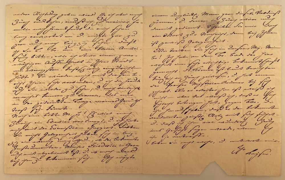 In einem umfangreichen Brief aus Weimar an den Dichter und Kunsthistoriker Wilhelm Gottlieb Becker in Leipzig schildert er seine Situation und Pläne: " ... Daß Sie mir wohl wollen, daß wir Freunde sind - warum wollten, warum solten wirs nicht seyn, da es leider ohnedem genug giebt was unter Menschen im Wege steht - das bey uns, bey mir wenigstens nicht ist, da ich mich bemühe das bißchen leben in dieser Welt nicht zu verkezzern, sobald ich irgendwo klingen höre, wenn ich einschlage. Also laßen sie uns einander seyn, was wir seyn können. Nach der Schweiz geh' ich gewiß wieder zurück. Meine Bestimmung ging eigentl. nicht hieher nach Weimar; aber weil ich nun einmal da war, so blieb ich in der guten freundl. Aufnahme hängen, u. es ist mir jezt wahrscheinl. daß dieser Auffenthalt meinem ganzen Wesen eine andere Richtung geben wird. Ehe ich aber nach Zürich zurückkehre, muß ich zu meiner Familie nach Frankfurt ... u. möchte gar zu gern auch noch Leipzig sehen. ...". Dann fragt er nach dem Instrumenten-Macher Friederici in Gera, der sich zu einem der bekanntesten Klavier- und Orgelbauer im 18. Jahrhundert entwickelte. Zu dessen Kunden zählten u. a. Leopold Mozart und die Familie Goethe aus Frankfurt. 1780 wütete in Gera ein verheerender Stadtbrand und Kayser erkundigt sich bei Becker, "ob der [Friederici] auch mit abgebrannt ist" ... Wie treiben sie sich in unsere My Mein Br[uder]! Ich haben an dem Bruder Bode der hier wohnt eine sehr wichtige Bekanntschaft gemacht. Dr. Körner (Schillers Freund) ist laut Berichten kürzlich in Zürich gewesen u. hat einen der Pariser MysterienKrämer bey sich gehabt. Wo er weiter hin ist weiß ich nicht - aber das weiß ich, daß er sich schlecht betragen hat, gegen br. die ihn hinaufhoben, daß er den bekannten verdammten geistl. Stolz mit sich führt - u. daß ich ihm viel wunderl. Zeug ins Gesicht sagen werde, wenn ich ihn je treffe ...". - Kayser komponierte vermutlich seit 1792 nicht mehr, sondern bestritt seinen Lebensunterhalt als Musikpädagoge. Zum 250. Geburtstag 2005 würdigte ihn die Zentralbibliothek Zürich mit einer Ausstellung, 2007 erschien eine ausführliche Monographie im Olms Verlag. - Autographen von Kayser sind selten im Handel. Aus der Autographen-Sammlung Hofmann in Köln.