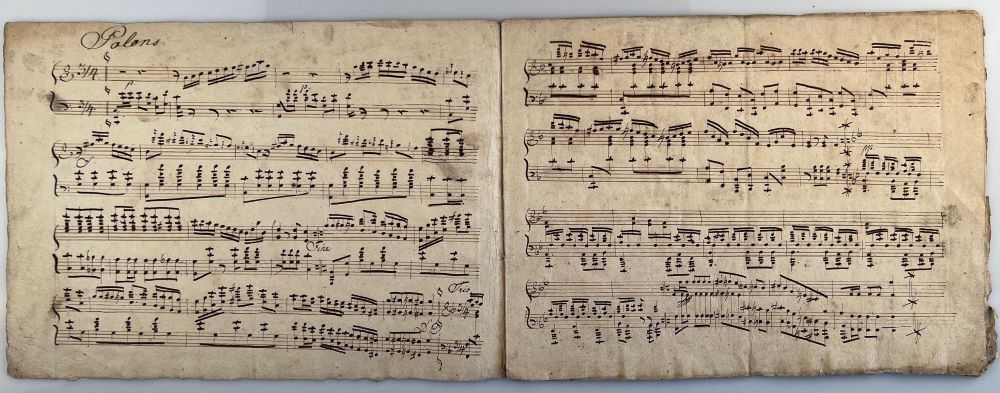 Polonaise und 3 Walzer in einem zeitgenössischen Manuskript. - Polonaise and 3 waltzes in a contemporary manuscript.