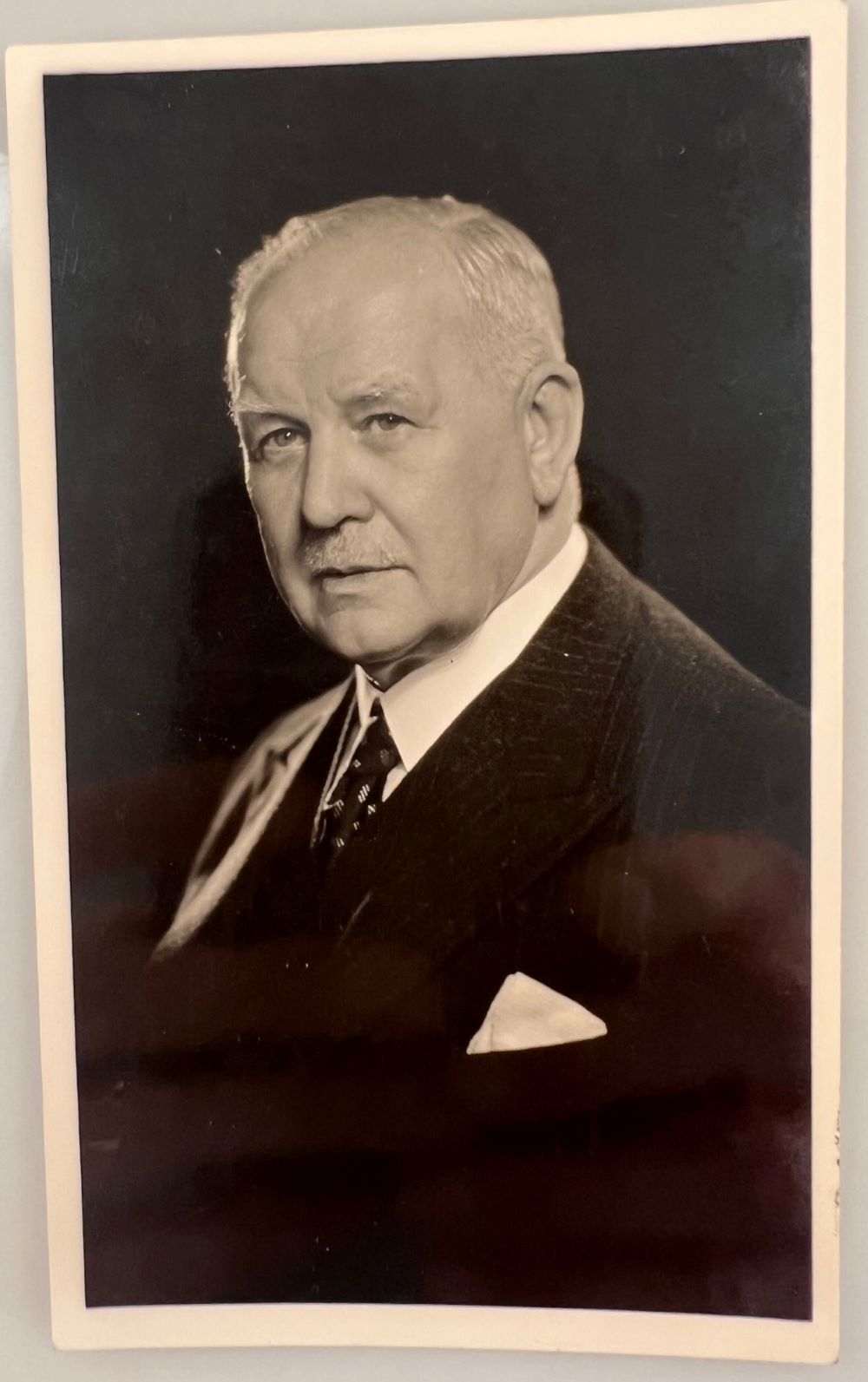 LEHAR, Franz [1870-1948]: Porträtphotographie mit eigenhändiger Widmung und Unterschrift auf der Rückseite. - Portrait photograph with autograph and signature on the back. Wien 10.3.[19]42 14 x 8,5 cm.
