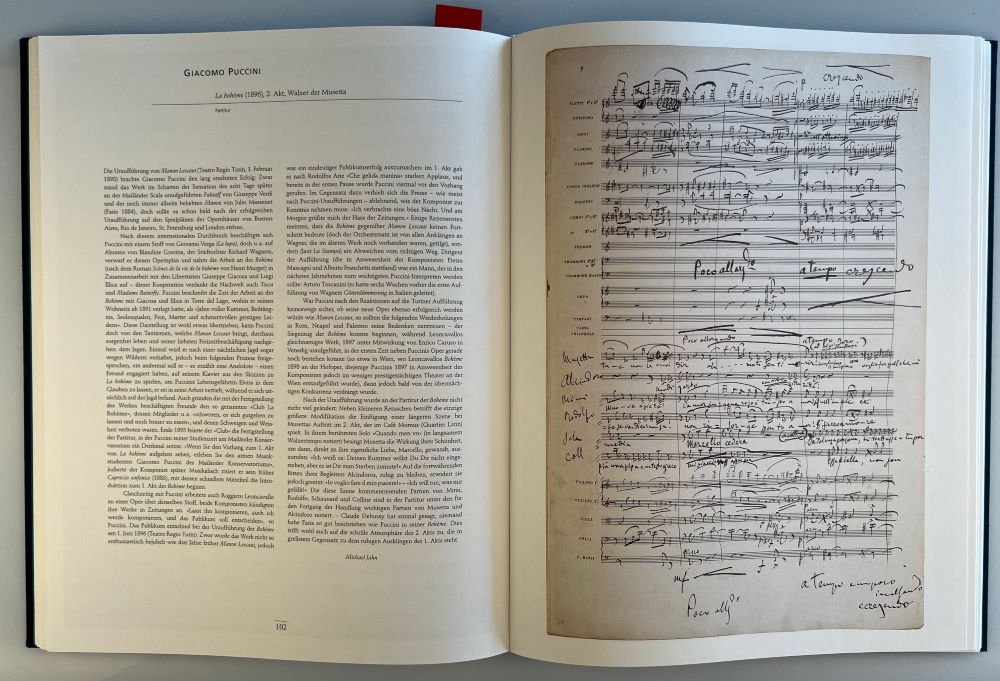 Sehr schöne Darstellung einer repräsentativen Auswahl von Manuskripten von 80 bedeutenden Komponisten über 4 Jahrhunderte mit umfangreichem zweispaltigem Kommentar zu jedem Manuskript.