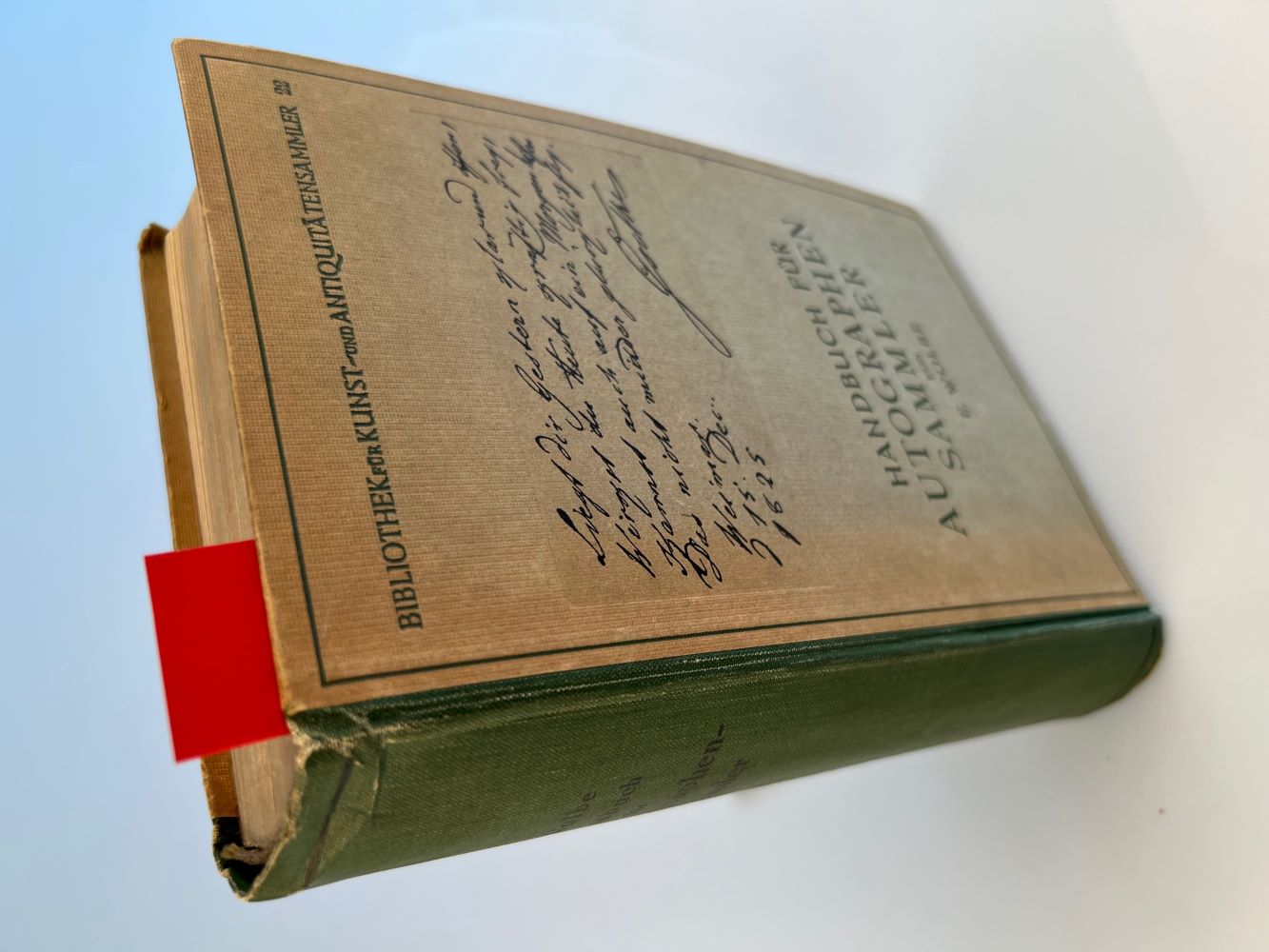 Wolbe, Eugen: Handbuch für Autographen-Sammler. Berlin Richard Carl Schmidt & Co. 1923 Gr. Oktav. 630 S. Mit über 100 tls. ganzseit. Abb. OLn. Kapitäle etwas bestoßen, sonst sehr guter Zustand.