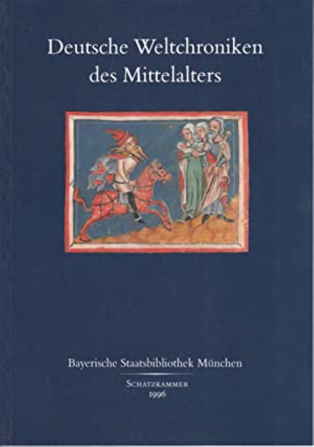 KLEMM, Elisabeth und U. MONTAG: Deutsche Weltchroniken des Mittelalters. Handschriften aus den Beständen der Bayerischen Staatsbibliothek München und der Sächsischen Weltchronik der Forschungs- und Landesbibliothek Gotha. München Bayerische Staatsbibliothek (1996) Großoktav. 40 S. mit zahlreichen farbigen Abbildungen. OKt.