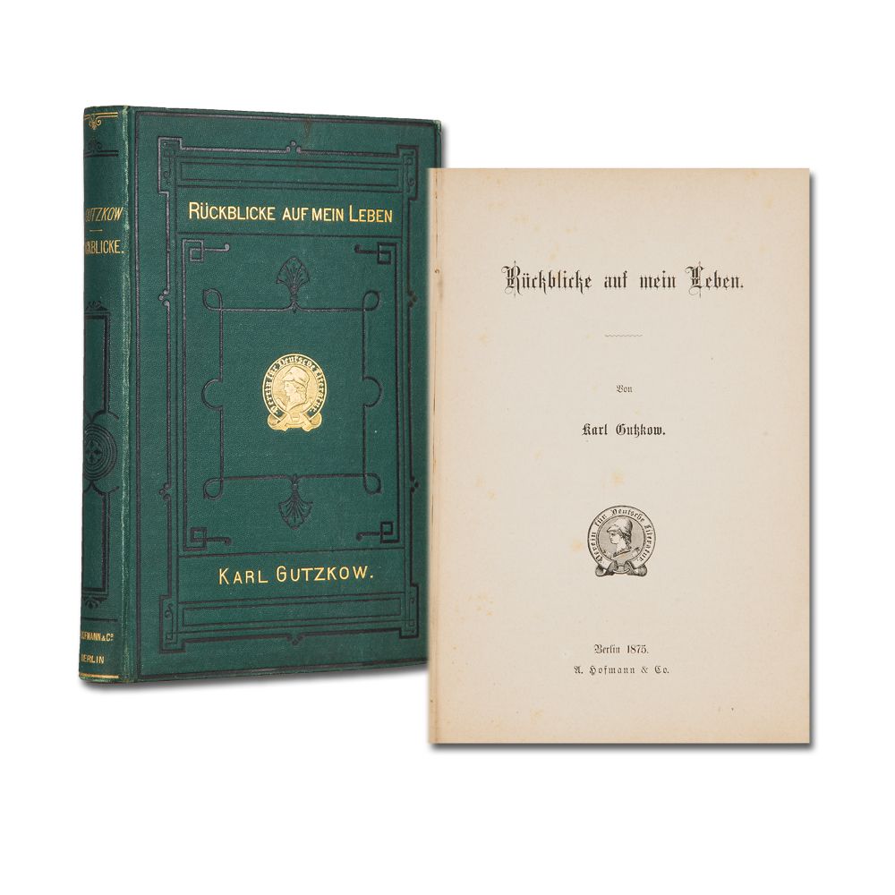 Erstausgabe des letzten Bandes der Erinnerungen, in dem der Zeitraum von 1829-49 dargestellt wird. Die wichtige Quellenschrift enthält ausführliche Schilderungen aus dem Kreis der Jungdeutschen allerdings versetzt mit Polemiken und Bitterkeit bedingt durch die erlittenen Enttäuschungen und von der Krankheit beeinflußt. "Der Kämpfersinn, der der Zeit eigen war, ist zu ätzender Säure geworden, die alles zersetzt und benagt" (Th. Klaiber). - Houben, Gutzkow-Funde 553; Wilhelm-Galley II, 1594.
