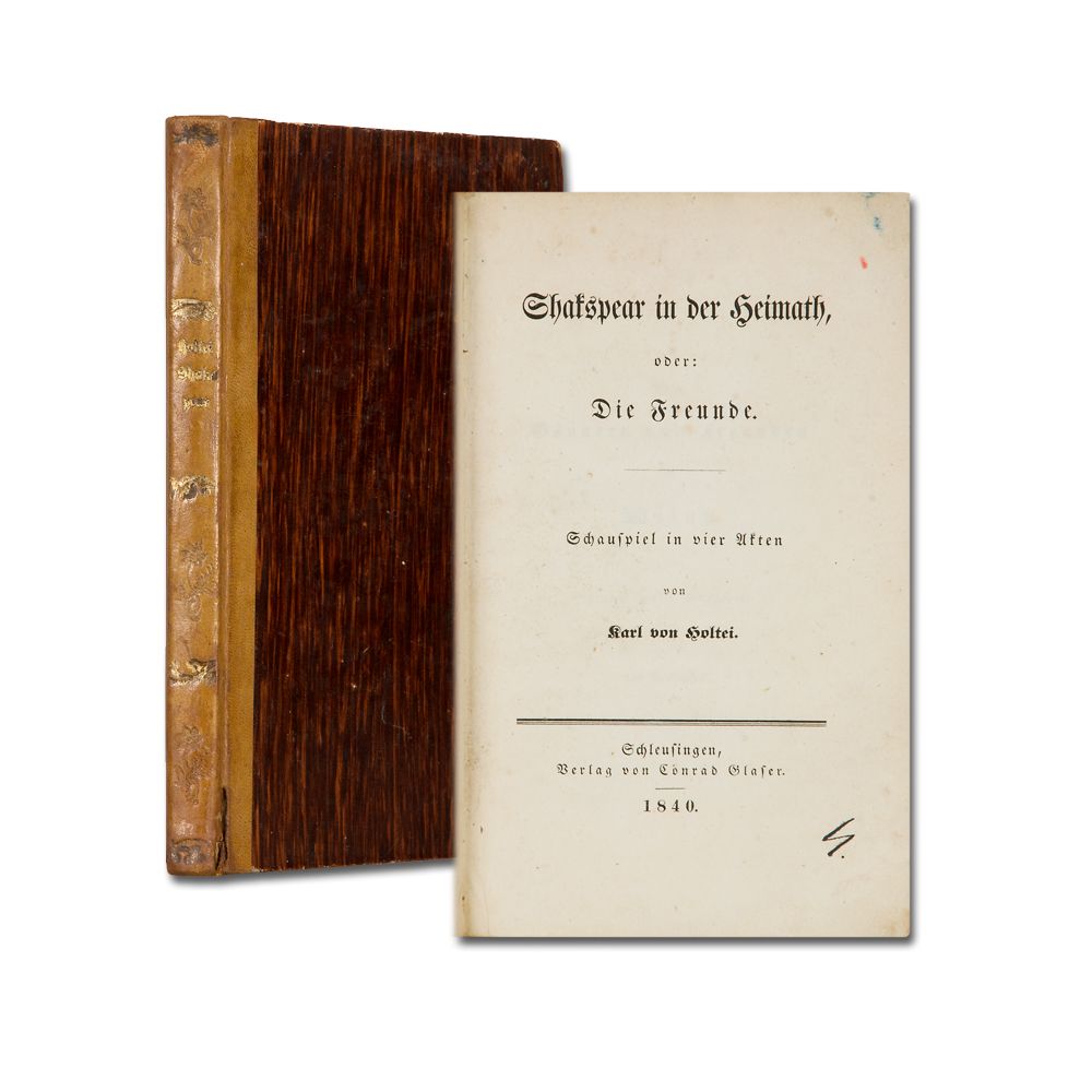 HOLTEI, K. von: Shakspear [!] in der Heimath, oder: Die Freunde. Schauspiel in 4 Akten. Schleusingen, C. Glaser 1840. XIV, 178 S. Halblederband der Zeit.
