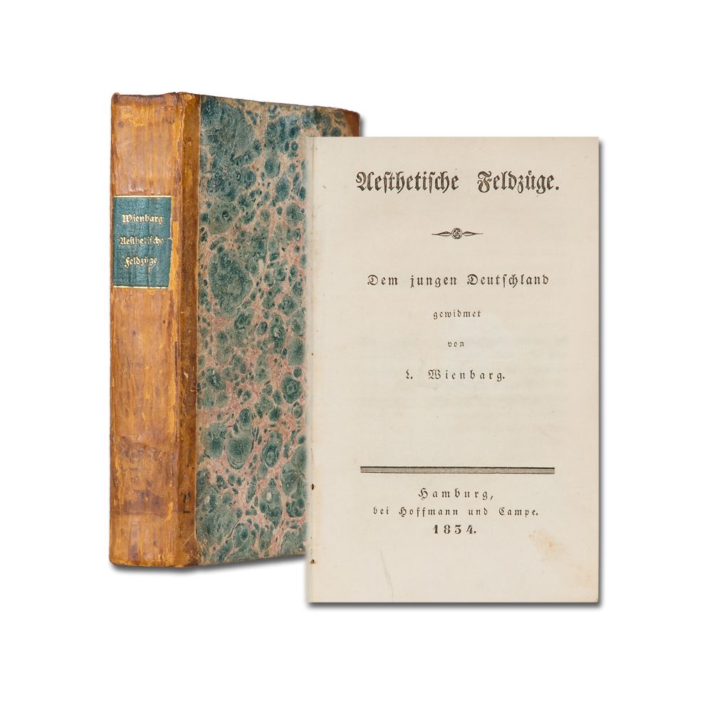 WIENBARG, L.: Aesthetische Feldzüge. Dem jungen Deutschland gewidmet. Hamburg, Hoffmann und Campe 1834. X, 308 S. Gelöschter Stempel auf Titelrückseite. Halblederband der Zeit. Ecken bestoßen.