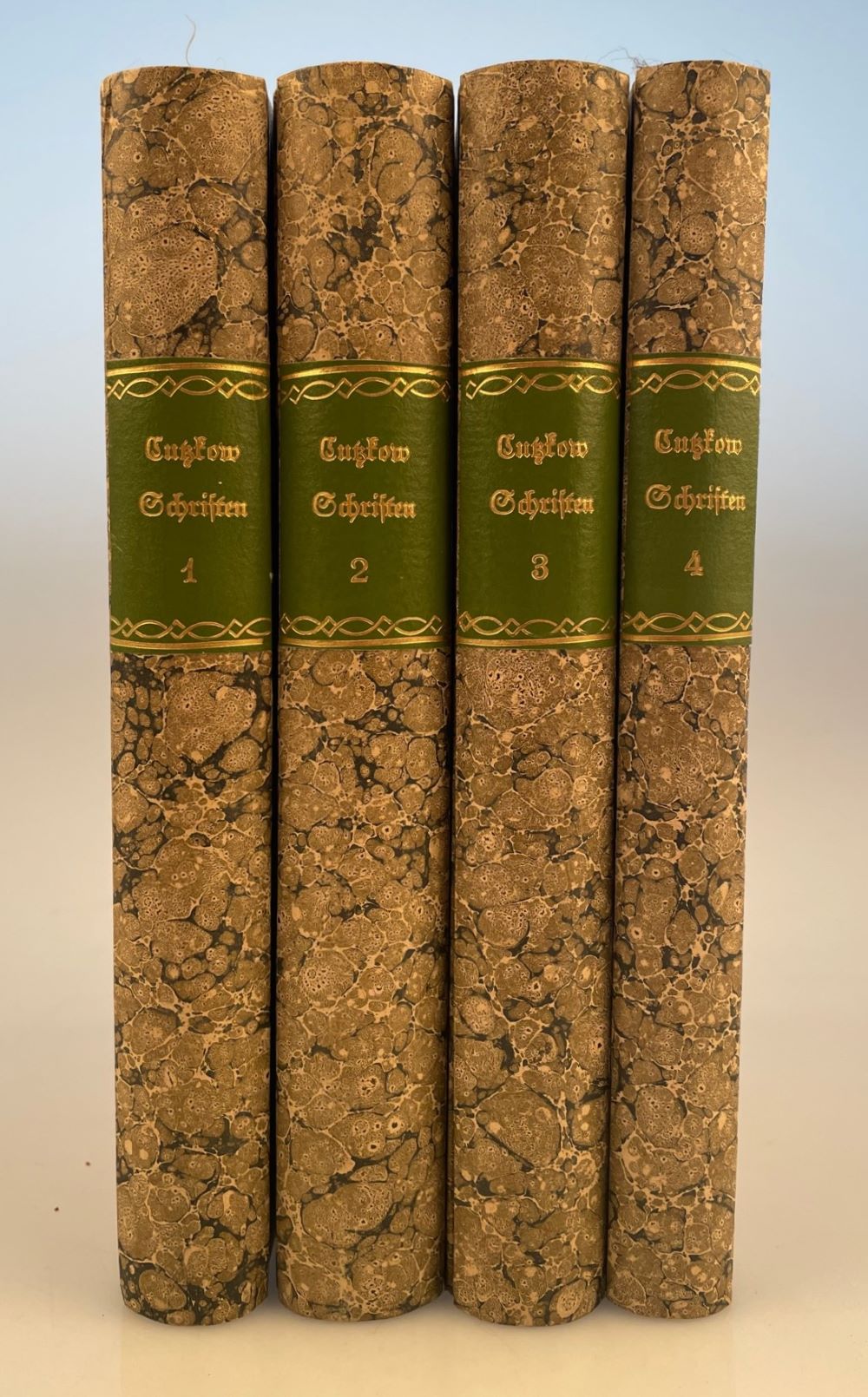 GUTZKOW, K.: Vermischte Schriften. 4 Bände. Leipzig. J. J. Weber und F. A. Brockhaus 1842-50. Frisches Exemplar. Pappbände mit zeitgenössischem Buntpapier.