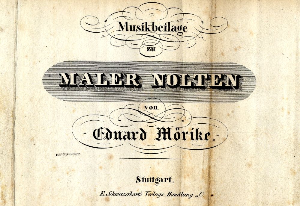 Vollständiges Exemplar der Erstausgabe der ersten Buchveröffentlichung Mörikes mit der seltenen Notenbeilage, die hier teilweise in einem Faksimile-Druck beiliegt. - Der "Maler Nolten" spiegelt in einer Zeit des Übergangs die verschiedenen Strömungen der Zeit selbst wider. Eingeflochten sind Erstdrucke von 24 wichtigen Gedichten, darunter "eine Gruppe von musterhaft gebauten Sonetten" (H. E. Holthusen). Wie aus Mörikes Korrespondenz zu entnehmen ist, hatte ihn der Plan zum "Maler Nolten" schon 1828 beschäftigt. Die Hauptarbeit wurde aber erst 1830 abgeschlossen. Erst 1831 konnte ein Verleger gefunden werden. Schwierigkeiten im Zusammenhang mit der Musikbeilage wie auch dem Umfang verzögerten die Drucklegung. "Der 'Maler Nolten' gehört im engeren Sinne zum sogenannten Künstlerroman, im weiteren in die Reihe der durch Goethes 'Wilhelm Meisters Lehrjahre' eingeleiteten Entwicklungs- und Bildungsromane, einer vorwiegend romantischen Gattung, die weit über die Romantik hinaus gewirkt hat" (B. v. Wiese). Auf die Rezension seines Freundes Vischer - die erst 7 Jahre später erschien - legte Mörike besonders großen Wert. "Wenn das ganze Buch eine seltsame Vereinigung phantastisch-romantischer Stoffe mit plastischer Klarheit und Göthischer Idealität darstellt, so verdient endlich der Styl wegen seiner Classicität eine ungeteilte Bewunderung". L. Hirschberg urteilt: "Weit seltener ist der Maler Nolten, und namentlich die Musikbeilage des Erstdrucks so gut wie unfindbar". Die Vertonungen stammen von Mörikes Bruder Karl und seinem Freund Louis Hetsch. - Kauffmann 64; Marbach-Katalog 193.