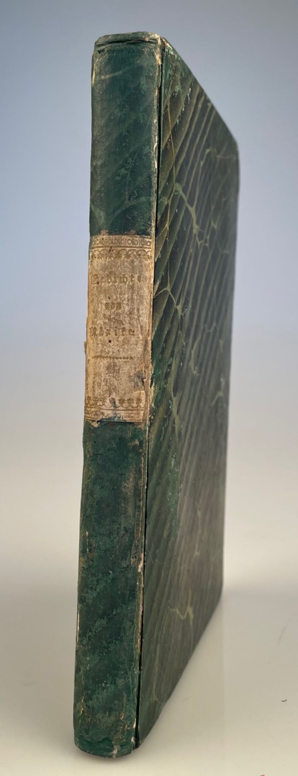 MÖRIKE, E.: Gedichte. Stuttgart und Tübingen J. G. Cotta 1838 IX, 236 S. Ohne die beiden, meist fehlenden Bll. Verlagsanzeigen. Durchgängig gering, anfangs etwas stockfleckig. Vorsatz mit Namenszug und kl. Bibl.-Schild. Pappband der Zeit mit hellem Rückenschild. Etwas berieben. Rücken behutsam nachgefärbt und restauriert. Ecken minimal bestoßen.