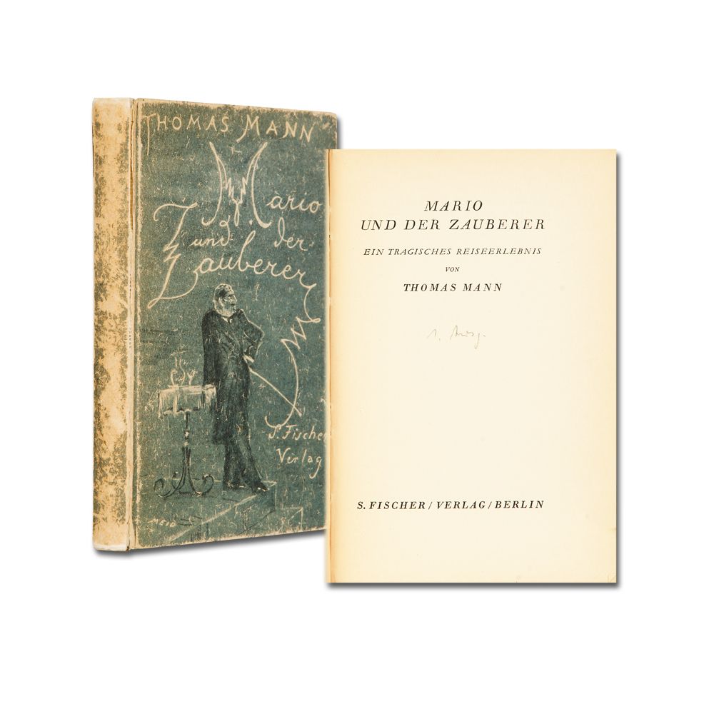 MANN, Th.: Mario und der Zauberer. Ein tragisches Reiseerlebnis. 1. - 30. Aufl. Berlin, S. Fischer 1930 Kleinoktav. 142 S., 1 Bl. Mit 13 Illustrationen im Text von Hans Meid. Illustr. OPappband. Stärker berieben und bestossen, Gebrauchsspuren.