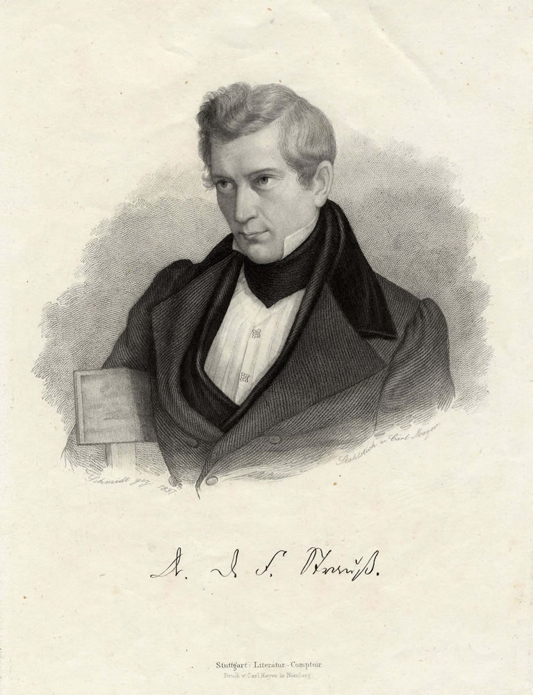 Gutes Porträt von D. F. Strauß (1808-1874), Theologe und Schriftsteller, der mit seinem Werk "Leben Jesu" einen Proteststurm ausgelöst hatte. Daraufhin wurde er 1835 aus dem Tübinger Stift und später aus dem Kirchendienst entlassen. Dank seines schriftstellerischen Talents und den vielfältigen Kontakten innerhalb der liberalen Bildungselite war es ihm möglich, als freier Schriftsteller zu leben (vgl. Killy).