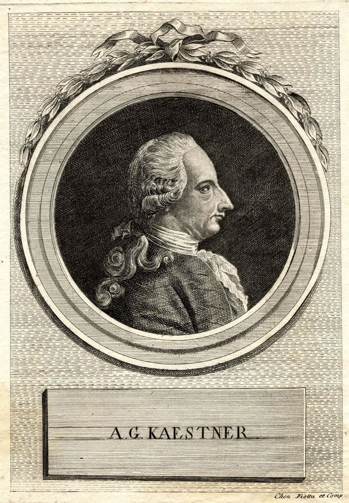 KÄSTNER, Abraham Gotthelf. - Portrait, Porträt, Brustbild nach rechts. Kupferstich [nach J. H. Tischbein] in ovaler Umrandung auf gestochenem Rechteck. [Ca. 1800]. 20,8 x 17 cm.