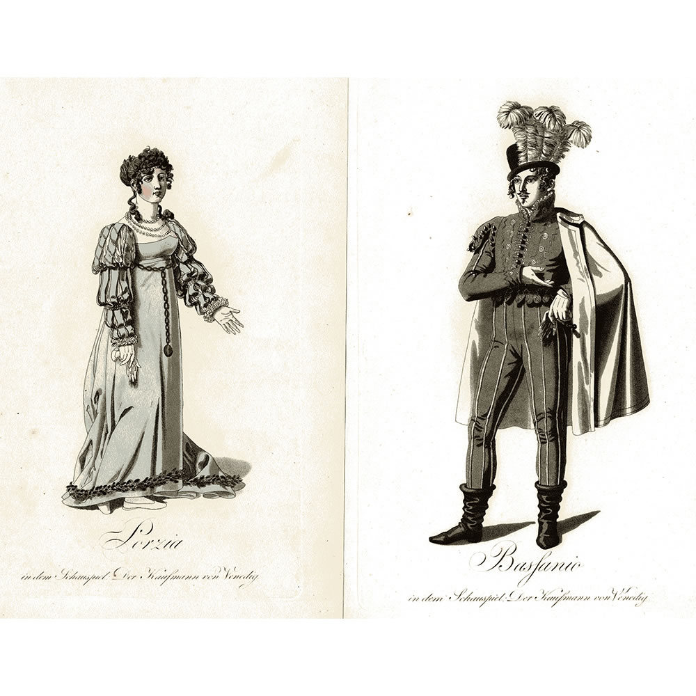 SHAKESPEARE, W.: Der Kaufmann von Venedig. 6 [von 7] Aquatinta [aus]: Kostüme auf dem königlichen Nationaltheater in Berlin. Unter der Direktion des Hrn. Aug. Iffland. [Berlin Wittich 1812] 23,5 x 14,5 cm.