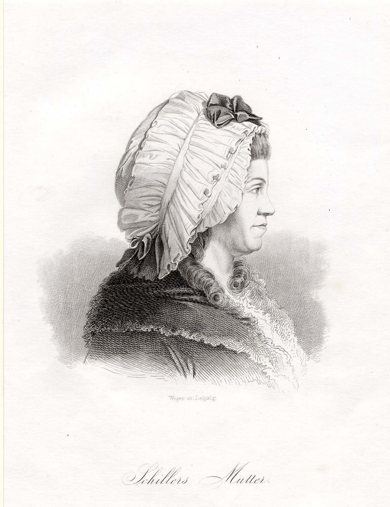 Schillers Mutter, Elisabeth Dorothea Schiller, geb. Kodweiß (1732-1802) heiratete 1749 erst 16jährig Johann Caspar Schiller. 1759 wurde Friedrich geboren. Er war der einzige Sohn neben 5 Schwestern.