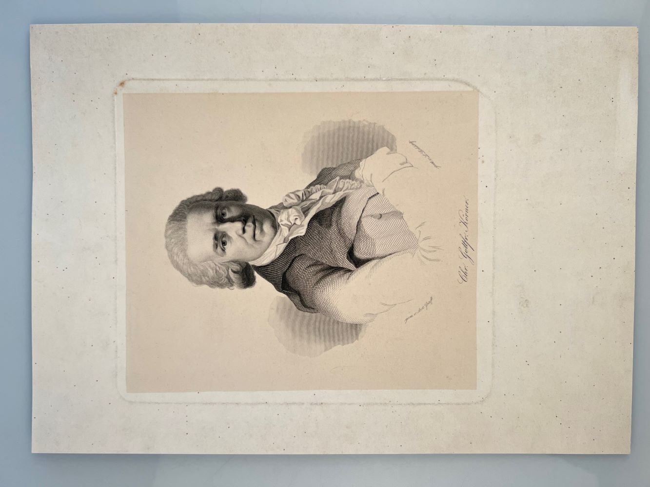 KÖRNER, Christian Gottfried. - Portrait, Porträt, Brustbild, Halbfigur. Stahlstich von L. Sichling nach A. Graff [ca. 1840] 17,2 x 14,6 cm. An den Rändern teilweise stockfleckig.