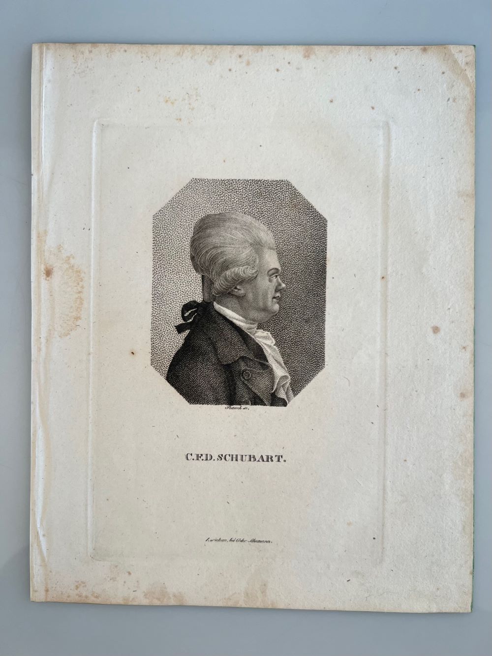 SCHUBART, Christian Friedrich Daniel. - Portrait, Porträt, Brustbild nach rechts. Kupferstich in Punktiermanier von Rauch nach Chr. J. Schlotterbeck. Zwickau, Gebr. Schumann [ca. 1820] 17,5 x 11,5 cm. Am Blattrand braunfleckig.