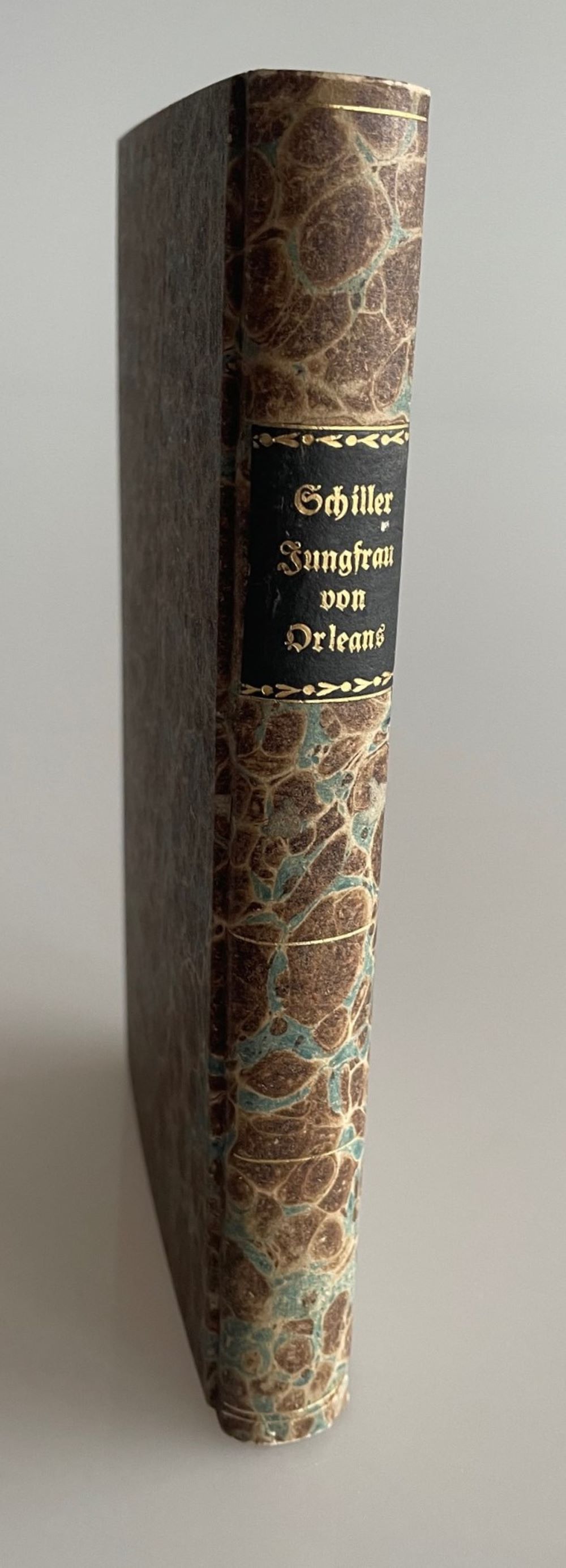 SCHILLER, [F.]: Die Jungfrau von Orleans. Eine Romantische Tragödie Berlin 1802 Duodez. Gestochenes Frontispiz von F.V. Poll, 216 S., teils stockfleckig. Pappband der Zeit.