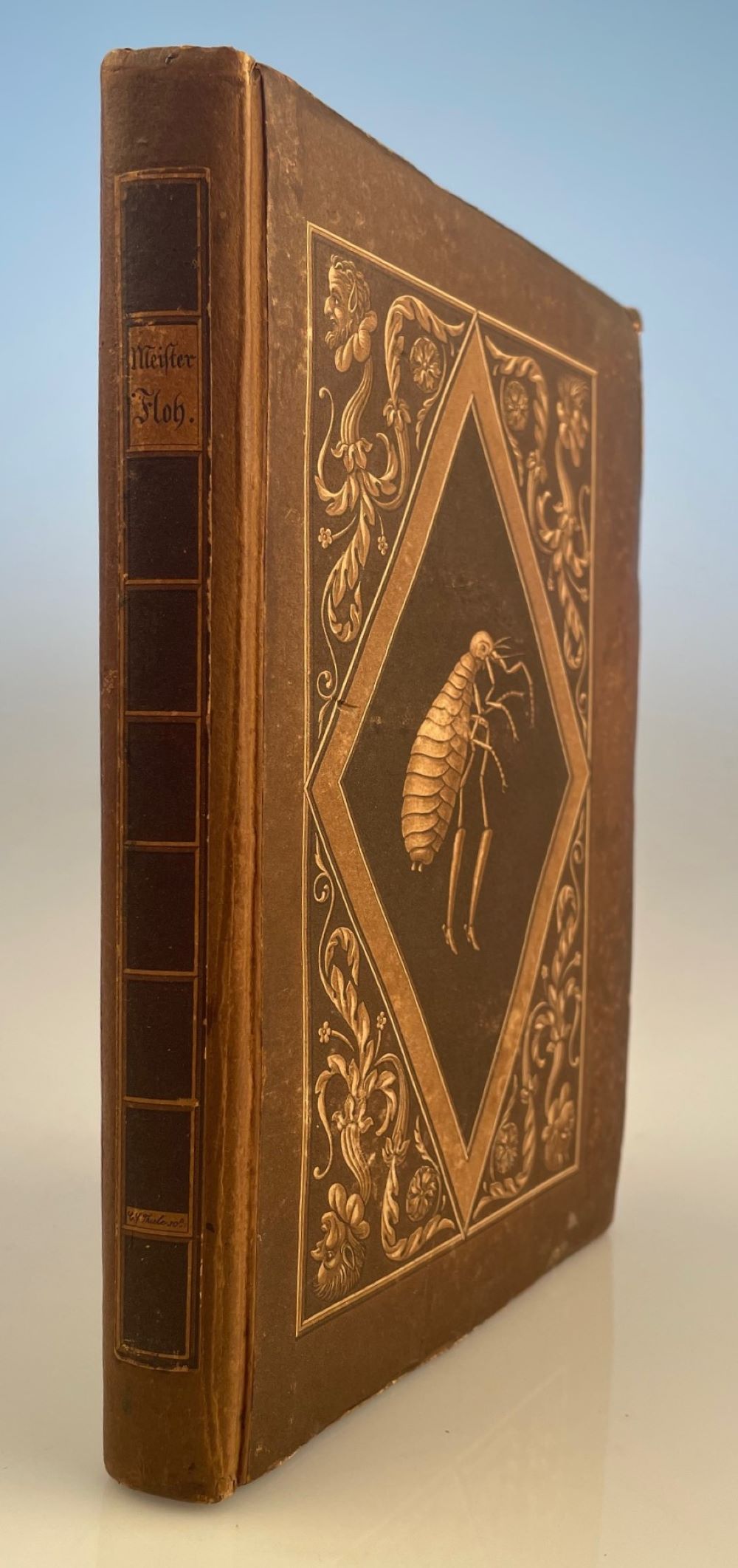 HOFFMANN, E. T. A.: Meister Floh. Ein Mährchen in sieben Abentheuern zweier Freunde. Frankfurt Fr. Wilmans 1822 1 Bl., 267 S. und 3 S. Anzeigen. Stockfleckig. Breitrandiges Exemplar. Unbeschnitten. Pappband unter Verwendung des illustrierten Originalumschlags. Sorgfältig restauriert.