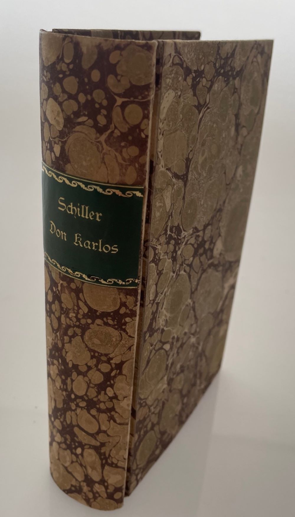 SCHILLER, F.: Don Karlos. Infant von Spanien. Leipzig, G. J. Göschen 1801. Gestochenes Frontispiz, 1 Bl., 404 S. Teils stockfleckig und mit Feuchtigkeitsspuren. Pappband im Stil der Zeit