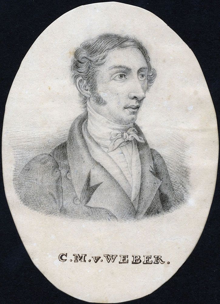 WEBER, Carl Maria von. - Portrait, Brustbild nach rechts. Orginal drawing Bleistiftzeichnung von Dieffenbacher. 1830. 18 x 13 cm. Auf Karton montiert.