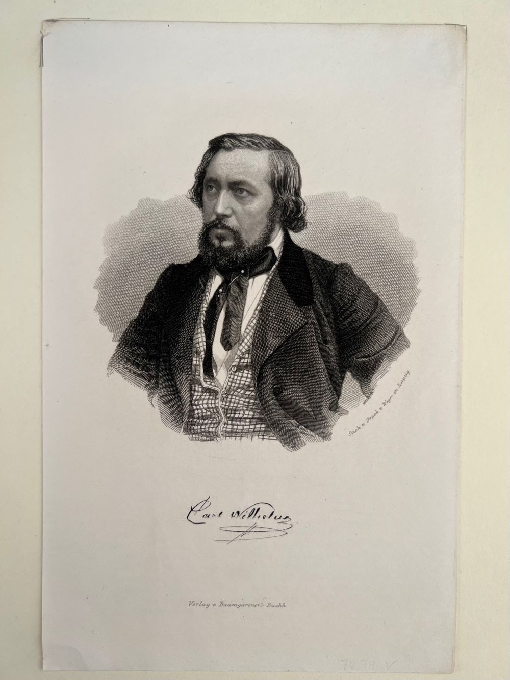 WILHELM, Karl. - Portrait. Porträt. Brustbild. Stahlstich von August Weger mit gestochener Unterschrift Wilhelms. Leipzig Verlag v. Baumgärtners Buchh. [ca. 1860] 21,4 x 13,6 cm. Sehr guter, fleckenfreier Abzug.