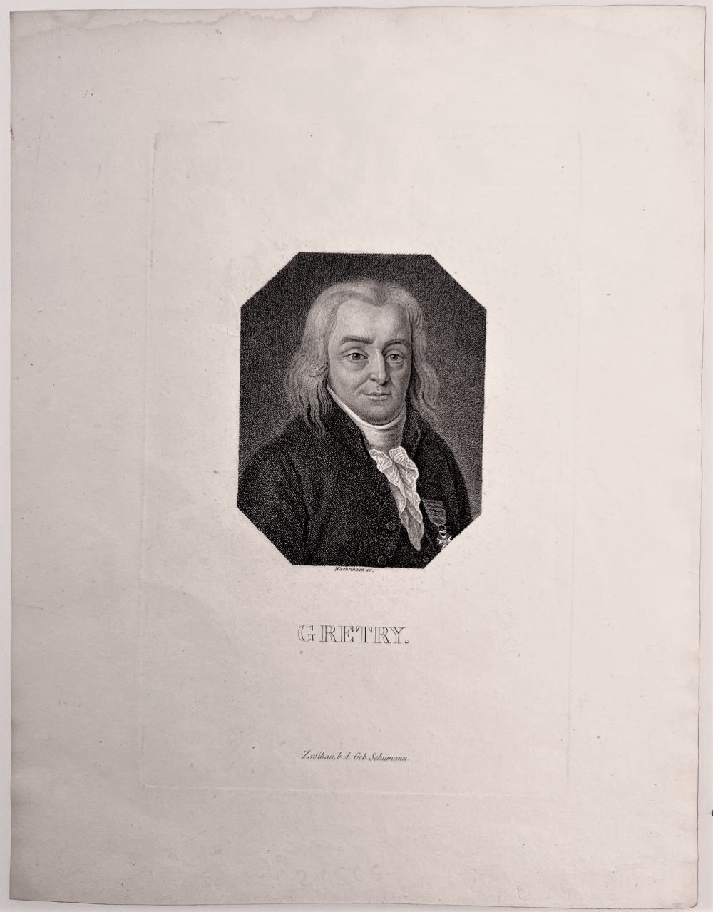 GRETRY, [A.E.M.]. - Portrait, Porträt, Halbfigur, Brustbild im Achteck nach rechts. Kupferstich in Punktiermanier von Wachsmann Zwickau Gebr. Schumann [ca. 1820] 18,5 x 12 cm.