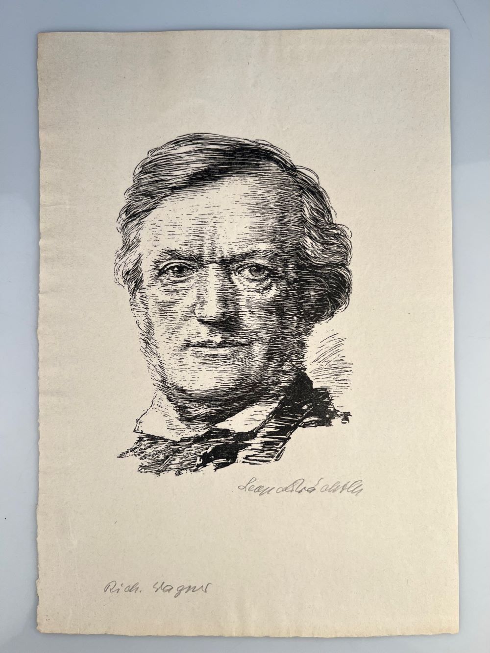 WAGNER, Richard. - Portrait. Porträt. Originalholzschnitt von Leopold Wächtler. Handsigniert. [Leipzig M. Möhring ca. 1930] 34,5x24 cm