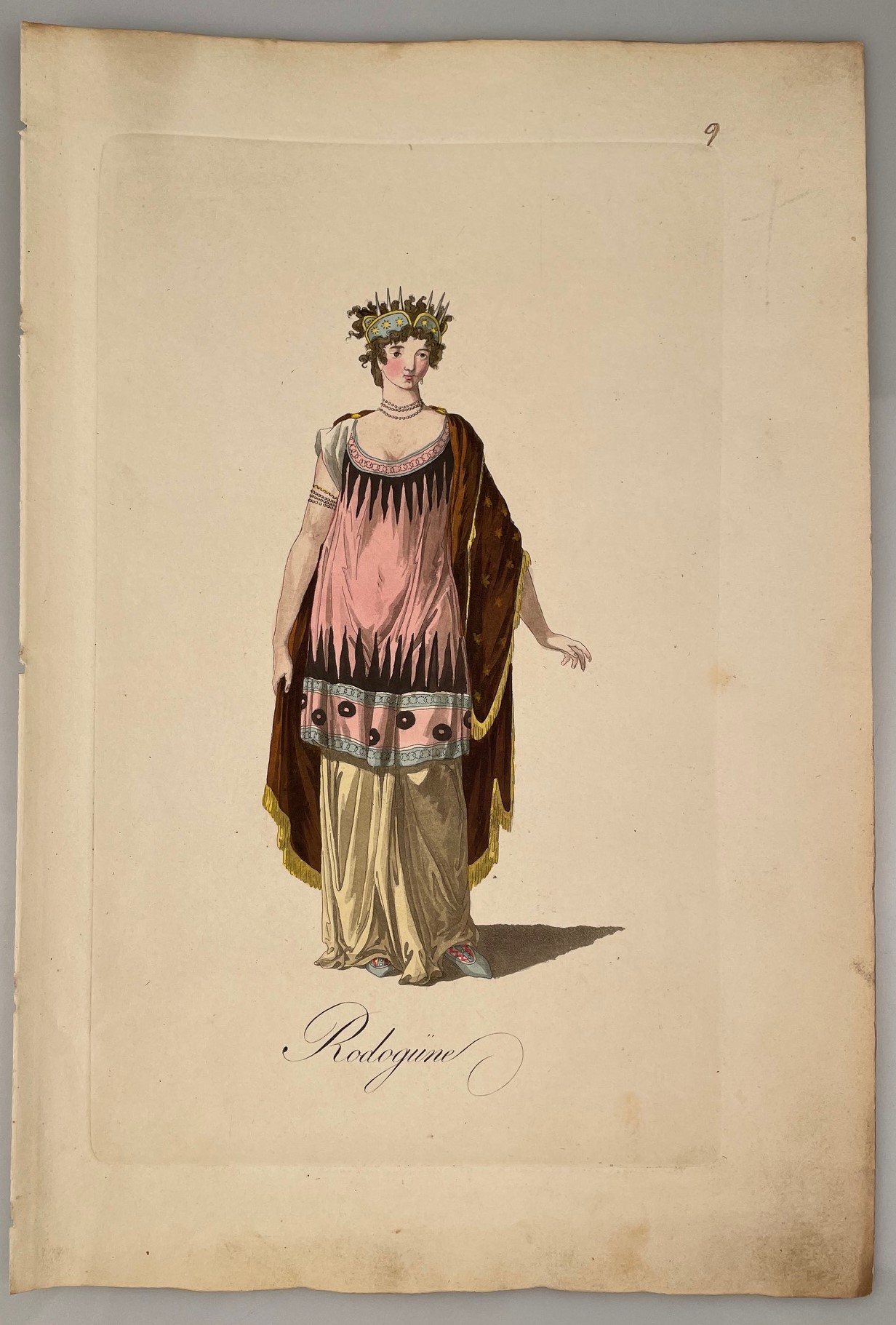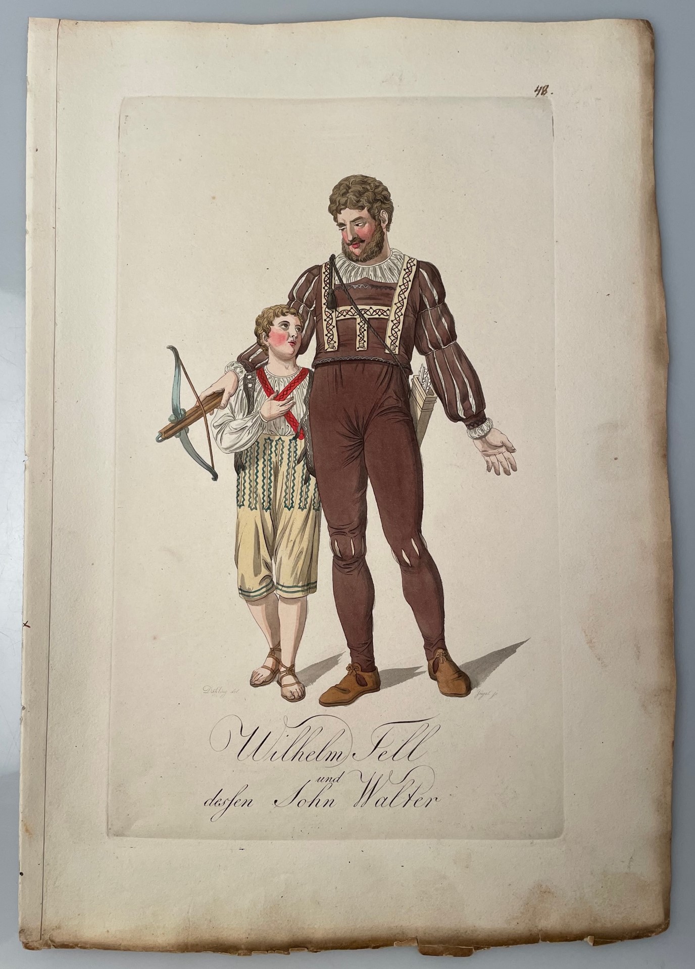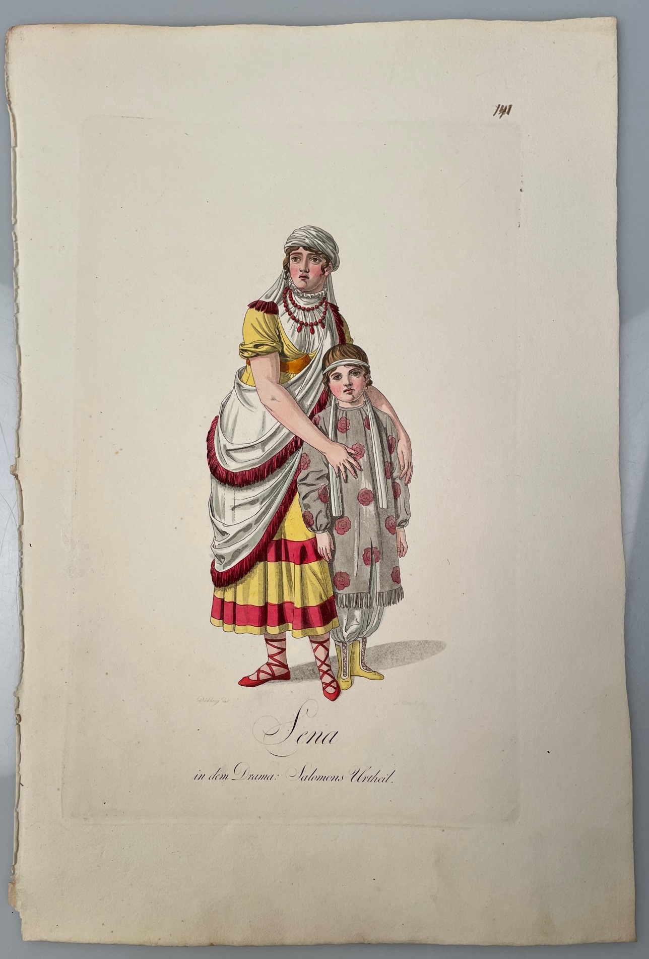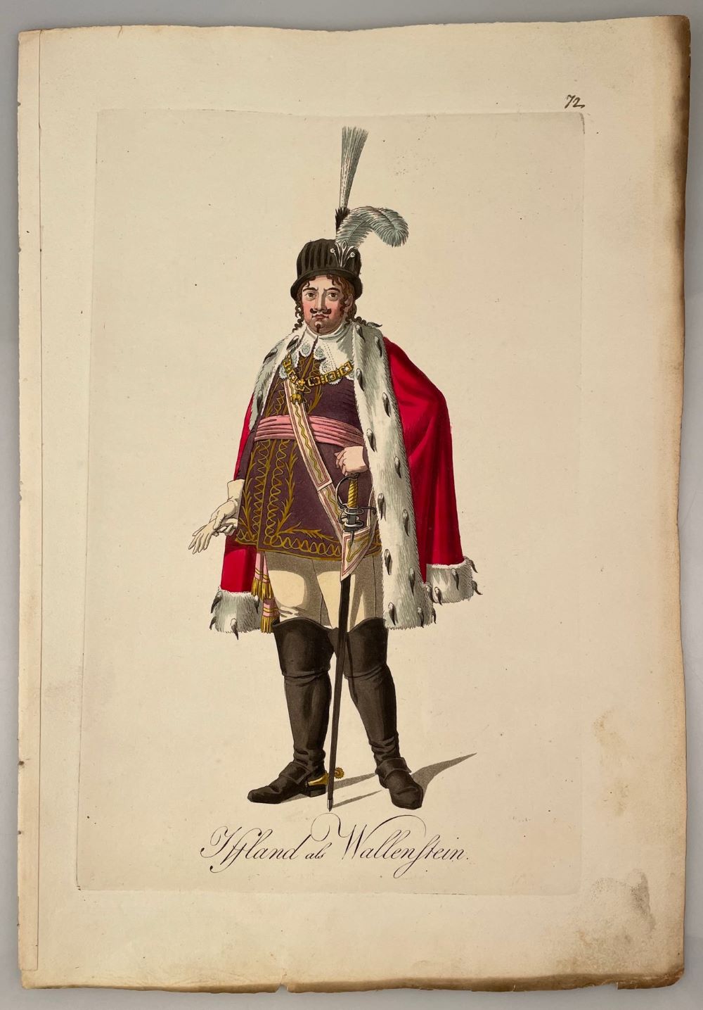 BERLIN. - Kostüme auf dem Kön: National=Theater in Berlin. Unter der Direction des Herrn A.W. Iffland. Berlin L. Wittich 1812 Quart. Titel, gestochenes Porträt Ifflands von Schröter, 153 [statt 175] kolorierte Radierungen von Jügel und Wittich nach Dähling. 2 Blatt gebräunt, sonst gut erhaltene, breitrandige Abzüge. Einzelblätter in Sichthüllen. 22/11 In 3 Ordnern