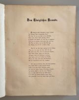 Seltene gestochene Originalausgabe in einer Variante: anders als bei Klein S. 43 beginnt die Musik auf S. 2 (Verso-Seite von "Personen") - wie bei Fuld beschrieben (3. Ed., 1985, S. 464). Das Wagner-Werkverzeichnis schweigt sich hierüber aus; vgl. WWV 86B, XII, S. 371. Nach dem Titelblatt in Steinstich die ebenfalls lithographierte ergebene Huldigung an Ludwig II. "Dem Königlichen Freunde", von Wagner im Druck namentlich gezeichnet und datiert "Starnberg im Sommer 1864". - Nicht BSB; dem Exemplar in CPM fehlt das Widmungsgedicht.