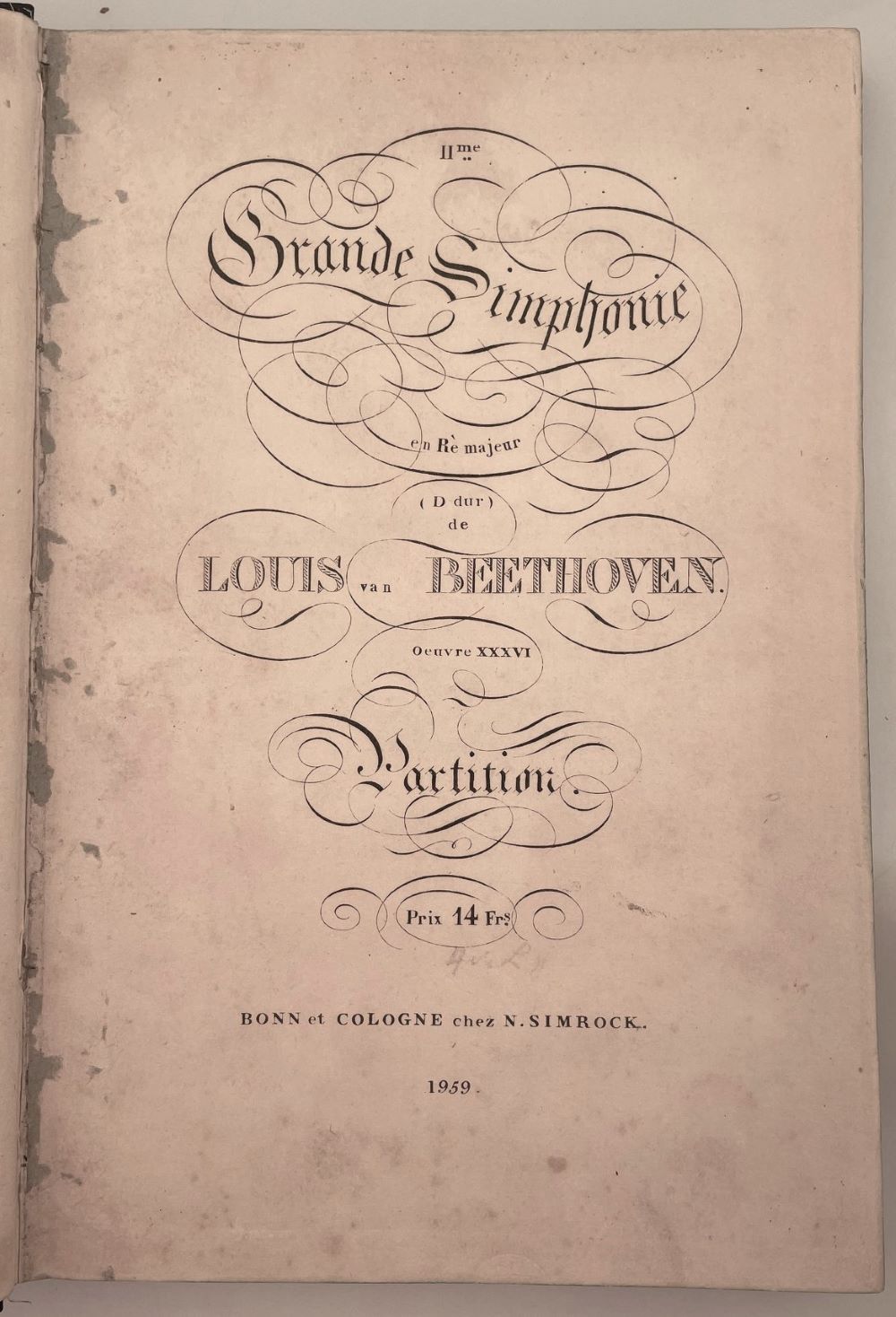 BEETHOVEN, L. v.: IIme. Grande Simphonie en Ré majeur (D dur). Oeuvre XXXVI. Partition. Prix 14 Frs. Bonn et Cologne, N. Simrock (PlattenNr. 1959) [1822] Quart. Titelblatt, 162 S. Wenig stockfleckig. Halbleinenband im Stil der Zeit