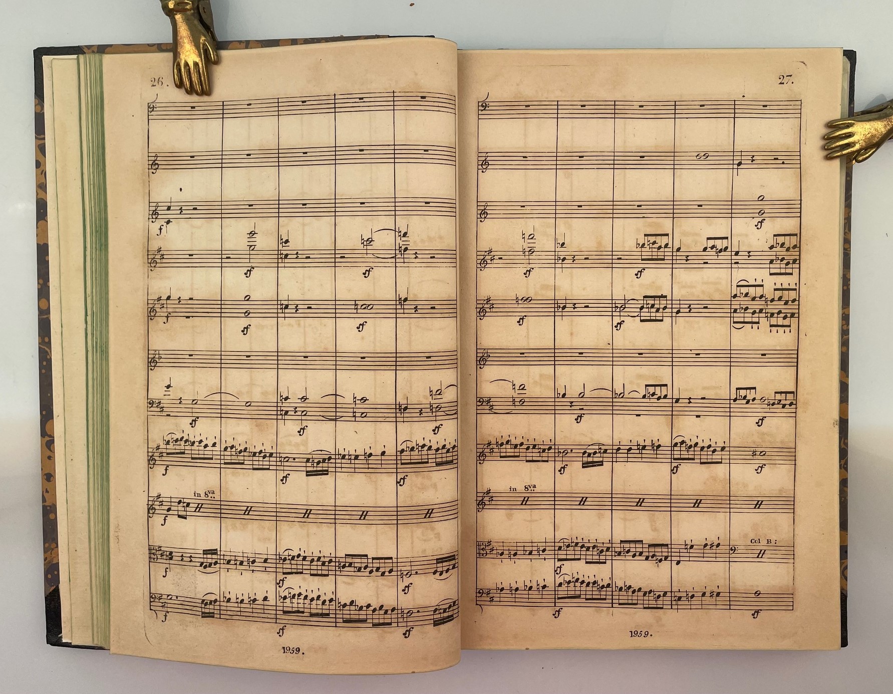 FIRST GERMAN FULL SCORE EDITION with the engraved metronome indications on pages 1, 58, 97 and 109. Simrock wanted to donate a worthy monument to his "worthy old friend" (May 13, 1822 to Beethoven). The AMZ praises the symphony as "most spirited, most original, most brilliant and most glorious" (June 18, 1823). Kinsky p. 91; Hoboken 2, 195.