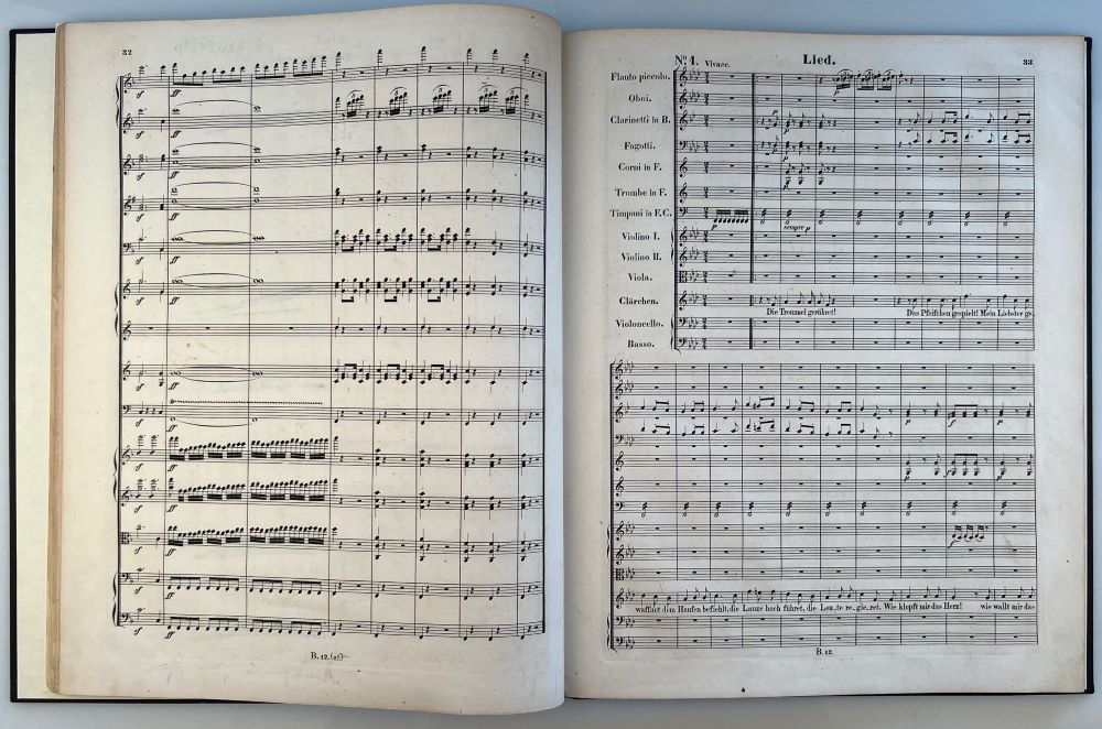 BEETHOVEN, L. v.: Musik zu Goethe's Trauerspiel Egmont. Op. 84. Partitur Leipzig Breitkopf & Härtel (PlattenNr. B. 12) [1865] Folio 31,5 x 26 cm. 1 Bl., 80 S. Vereinzelt etwas stockfleckig. Mit ausradierten kaum noch sichtbaren Eintragungen. Pappband.